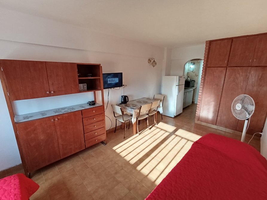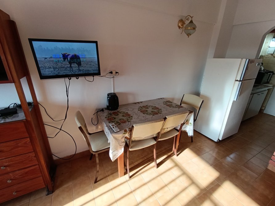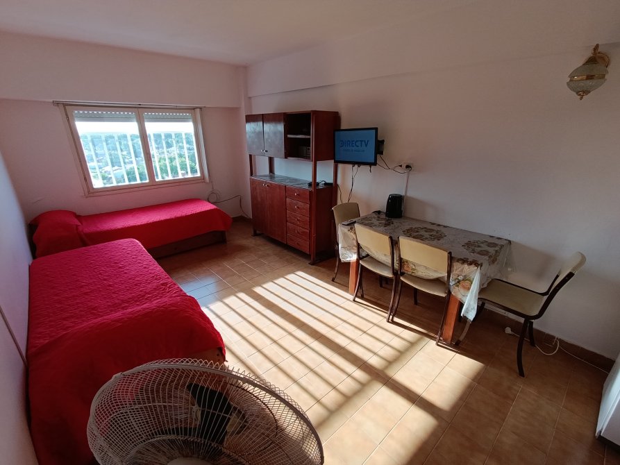 Mesa y sillas, ventilador de pie, tv de 24" con directv prepago a cargo del inquilino