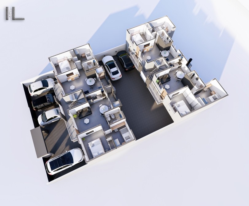 • Balcón + terraza individual con parrilla y lavadero (en planta alta)